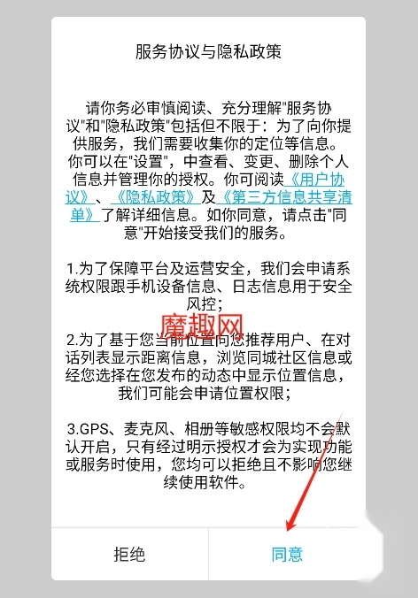 1、打开轻邻圈,点击同意并进入软件