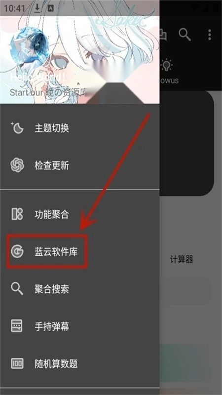 2. 在主界面中的侧边栏中点击“蓝云软件库”选项。