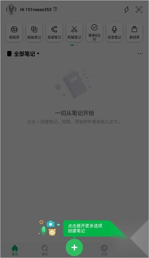 2、登录之后,点击下方加号可以创建笔记;
