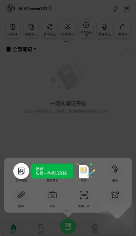 3、这里可以开始记录你的趣事,支持文字笔记、录音、手写等方式;