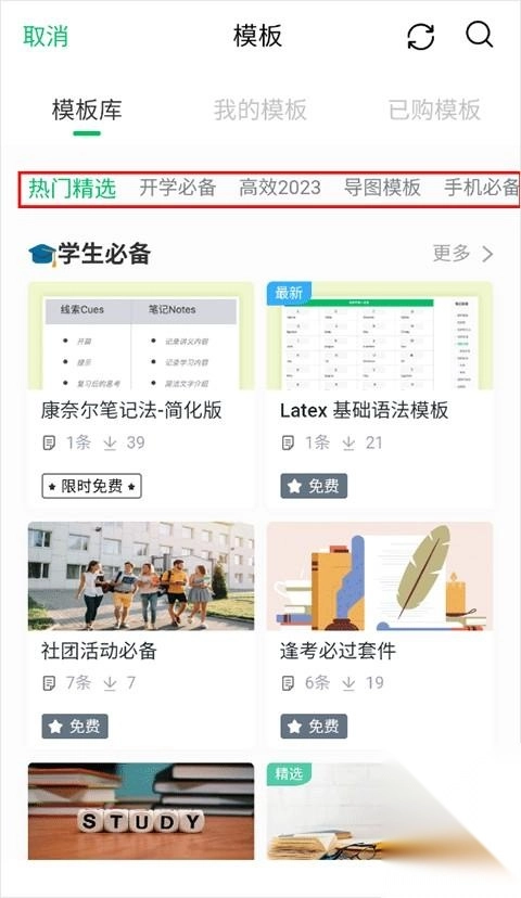 7、另外软件内还提供了大量的模板可以选择,包括了开学必备、手机必备等类型;