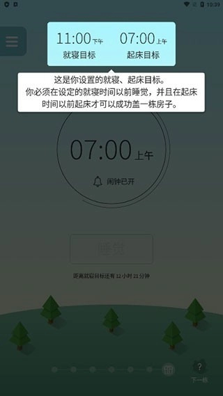 1、先安装SleepTown应用,打开后进入睡眠设置界面。