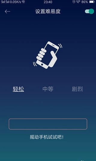 6、点击起床摇手机挑战即可设置,挑战有三类,轻松、中等、剧烈;