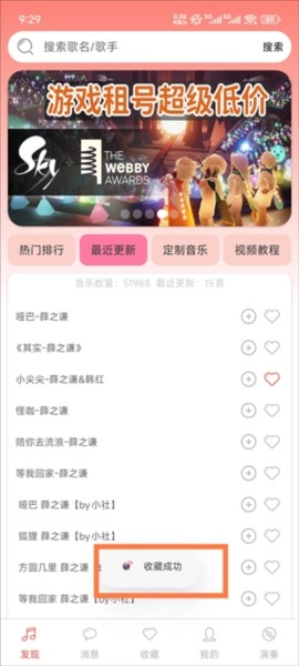 1、打开A光遇音乐盒,在首页就能搜索歌曲或者进行收藏操作