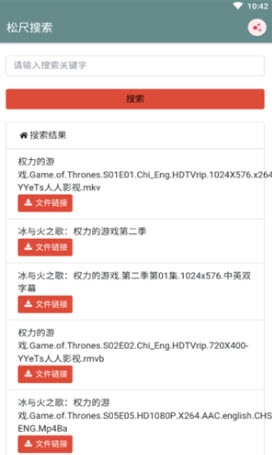 3、所有搜索结果均从网络并自动识别文件,用户点击直接文件,快速获取资源。