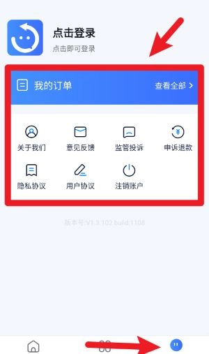 4、点击右下角“我的”图标进入账户中心,可查看订单记录、提交反馈及进行账户设置等操作。