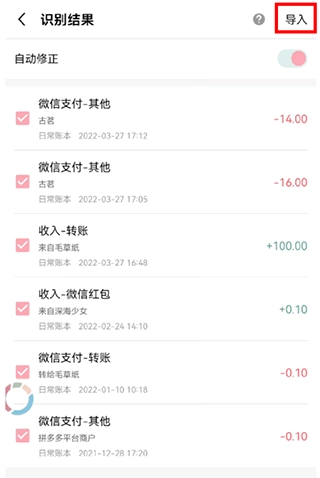 4、识别完成后,核实账单是否无误后,点击【导入】即可。