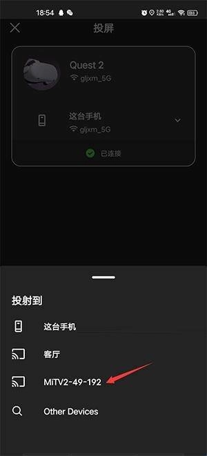 3、在点击投屏后,选择显示的头盔图标以确认设备。