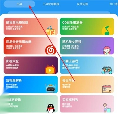 3、工具板块中,提供了包括音乐,影视,游戏等专区,点击即可使用;