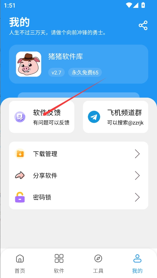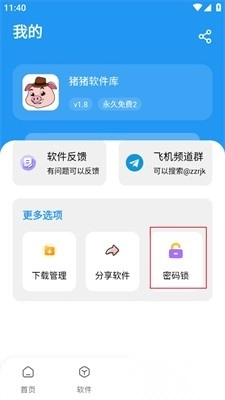 4、个人中心板块中可以查看管理,设置密码锁,还能分享软件。