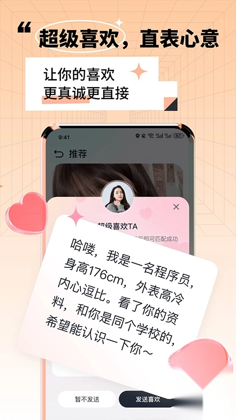 靠近是一款在年轻人中十分受欢迎的恋爱交友软件,用户能在软件里依据自身喜好匹配各类兴趣相近的异性用户,借助有趣的互动玩法快速拉近彼此距离、了解对方性格,特别适合有恋爱需求的朋友们尝试体验!