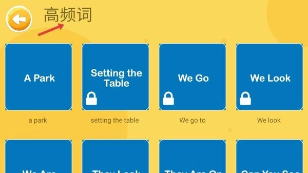 3、点击应用高频词学习内容,如APark等,部分内容锁定,助力儿童积累词汇。