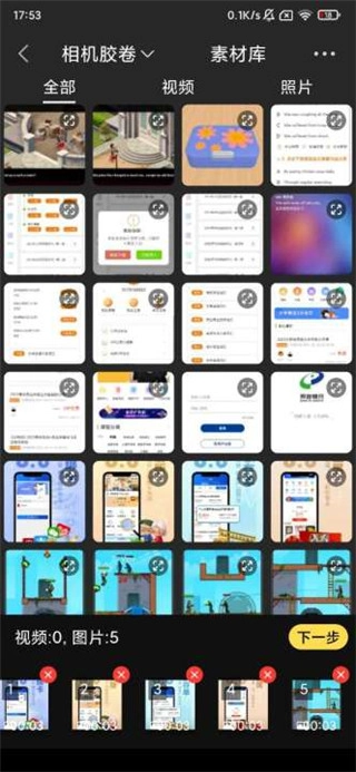 2、选择添加素材,点击下一步。