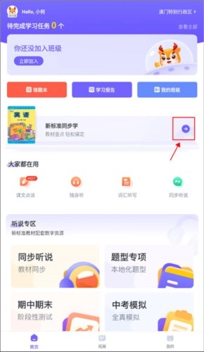 1、在首页点击课本右侧的箭头按钮“→”