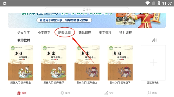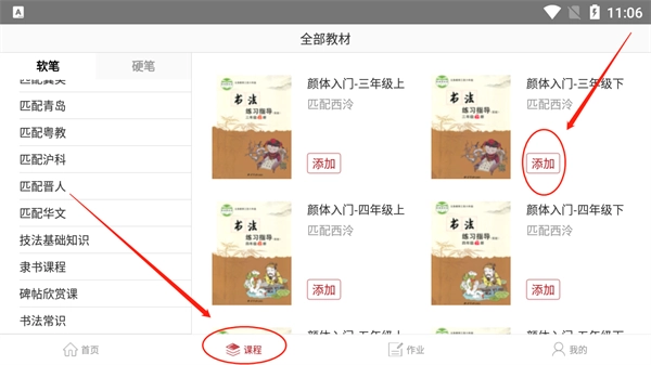1、登录方正书法教师端后,点击课程板块,再选择对应的教材完成添加操作。