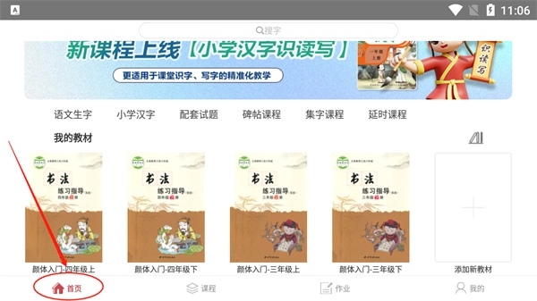 2、之后在首页就可以看到添加的教材课程。