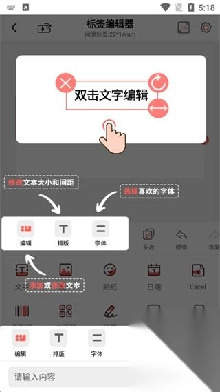 3、点击编辑可以添加或修改文本,点击排版可以修改文本大小和间距,点击字体用户可以根据需求选择字体;