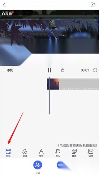 5、点击【剪辑】,可以对视频进行分割、变速等操作;