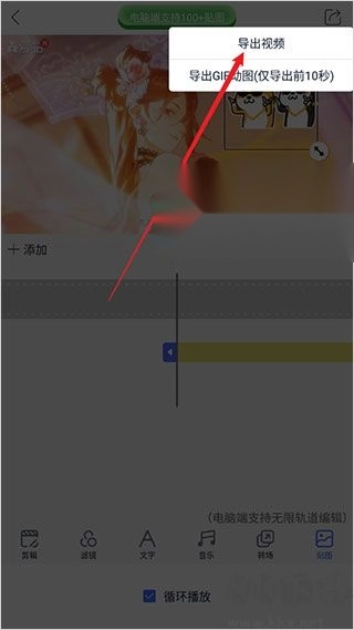 11、最后点击右上角的导出图标,再选择导出视频即可完成导出。