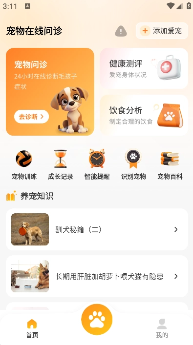 在主页面就能看到各项实用的养宠功能,大家可以根据自身需求选择使用。