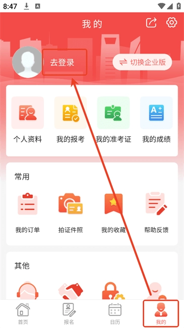 1.进入软件后点点击【我的】--“去登录”来登入
