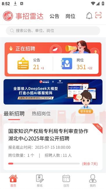 事招雷达最新版专为有考编需求的用户搭建了一个编制岗位查询平台。用户既可以通过设置条件筛选,也能直接搜索,找到契合自身的岗位;在掌握详细报考信息后,还能在线完成报名,为大家的选岗之路提供了切实的助力与支持。