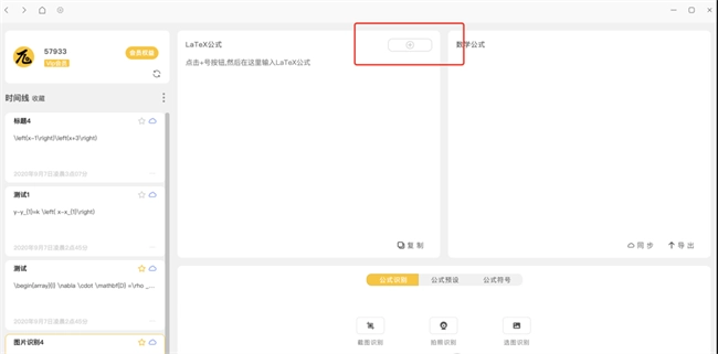 通过LaTex公式框的【+】符号新增公式记录