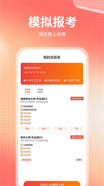 -智能匹配:根据考生的高考成绩,综合测评结果合理推荐高校和专业。