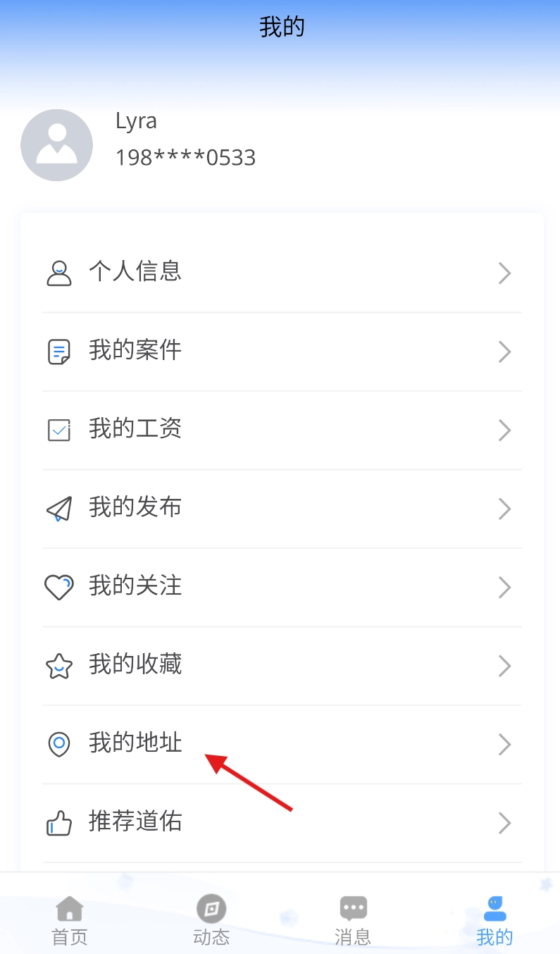 2、进入个人页面后,在功能列表中找到 “我的地址” 板块,点击进入地址管理界面。