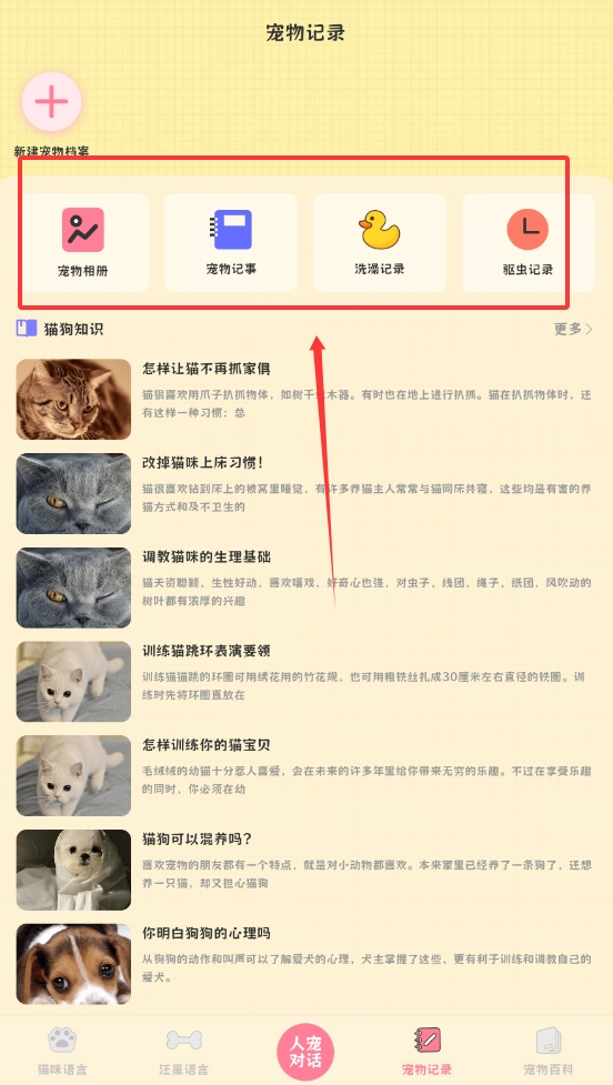 2、进入宠物记录,即可记录宠物的所有事物,日后观看也是很有意思的哦。