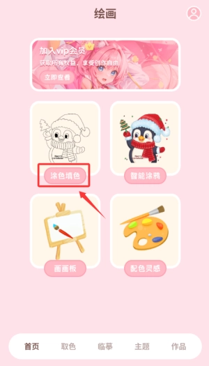 启动应用后,在首页找到并点击“涂色游戏”功能选项,即可进入画板页面。