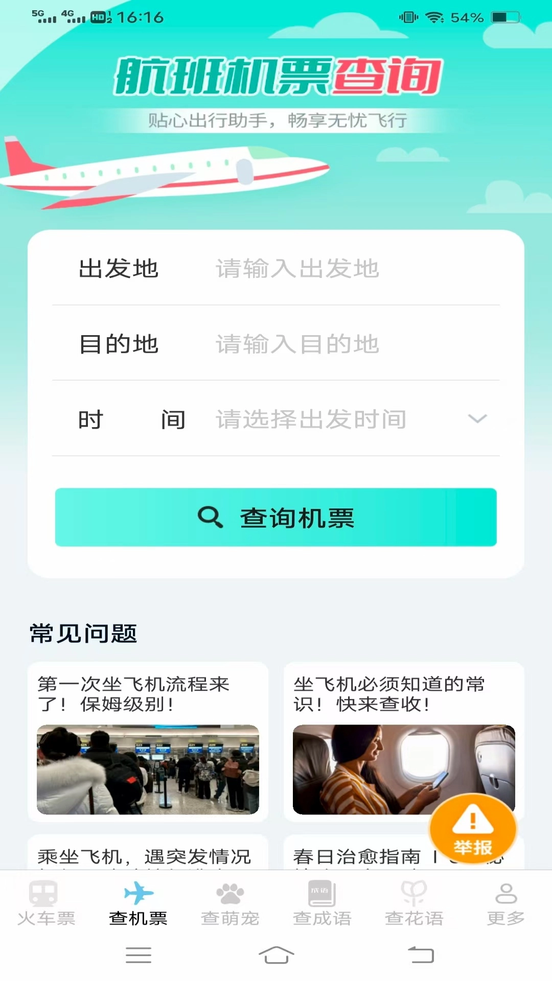 2、票务查询搭配实用出行资讯,知识查询板块与趣味内容结合,功能与资讯相互补充。