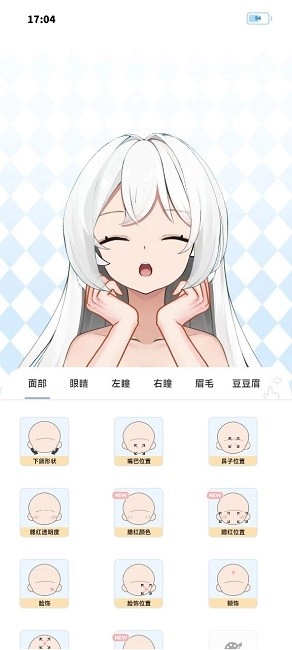 4、最后根据自己的需求,任意使用里面的眼睛、面部等道具进行捏脸即可