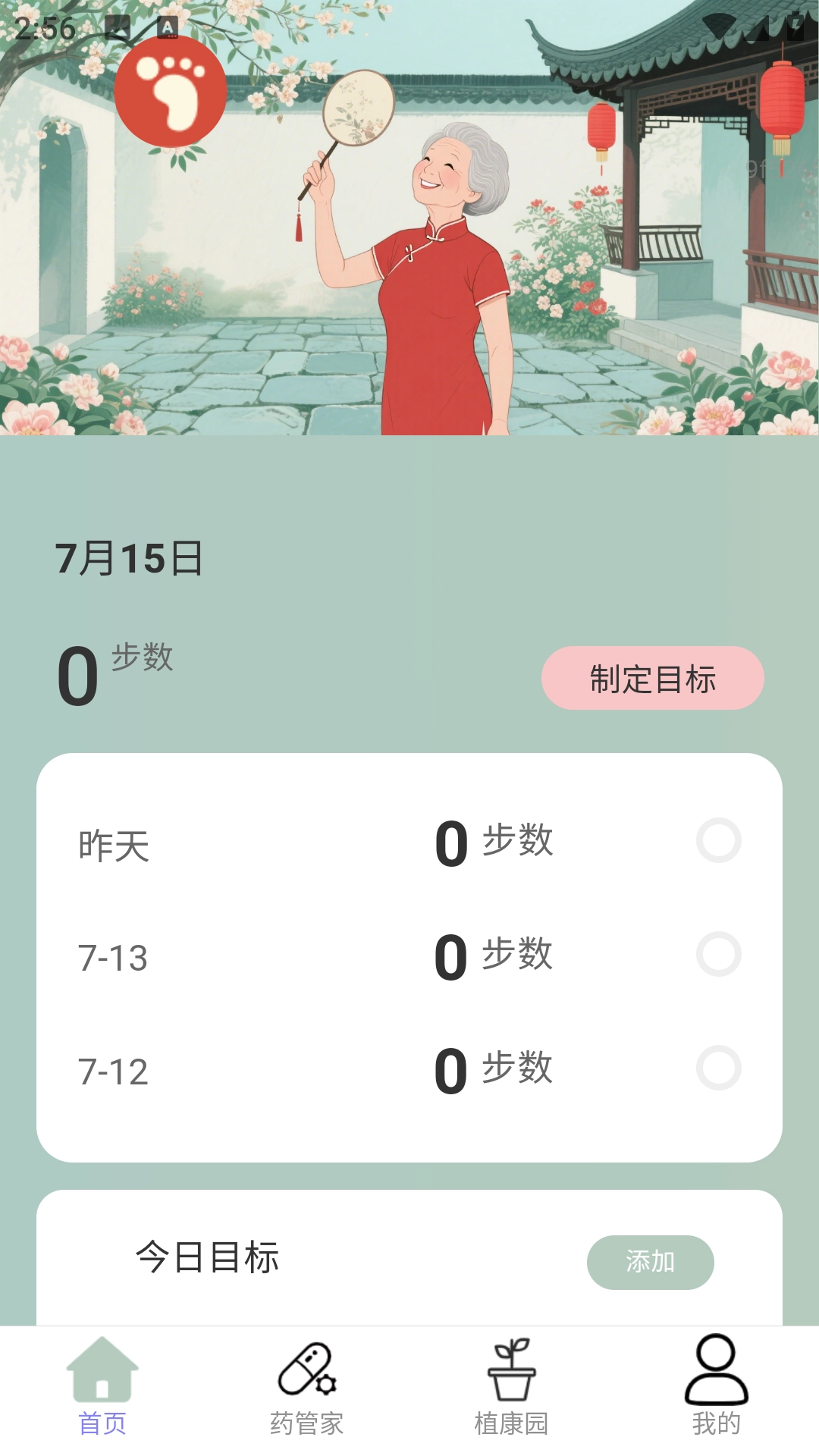 2、首页会看到最新的步数统计,还能手动添加今日步数目标;