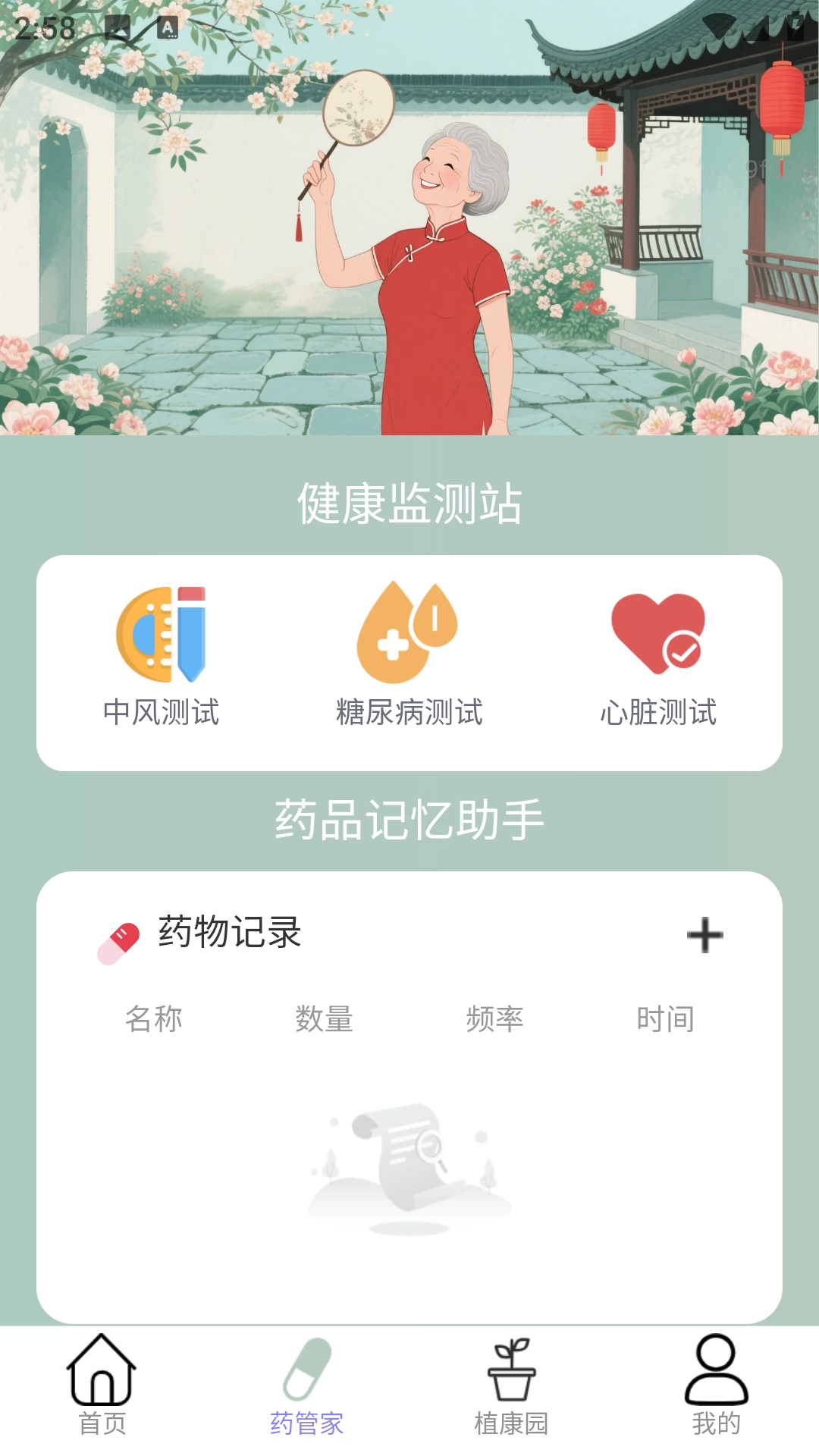 3、药管家板块支持添加药物记录,可录入名称、数量、使用频率等信息。