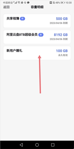 新用户都可获得100GB的永久有效的免费空间,用户可以进入应用的【我的】页面中点击【容量管理】