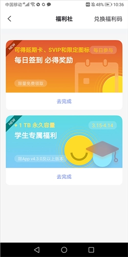 3、进入福利社页面中,通过完成活动任务进行免费扩容