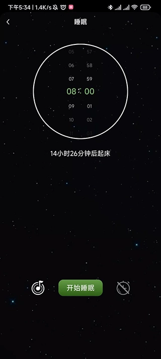 小编以睡眠为例,点击进入后设置我们起床的时间,然后可以选择开启助眠的音乐以及闹钟,完成后点击开始睡眠就可以了。