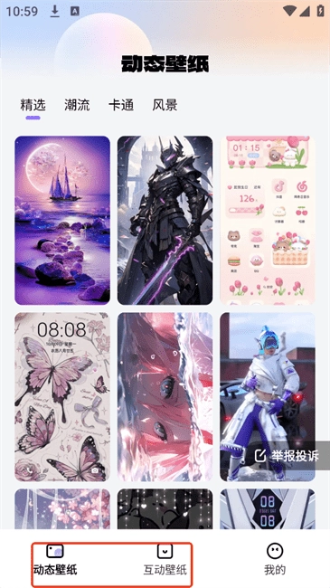 2、有多种分类且风格不同,包括动态壁组、精选、潮流、卡通、风景等。