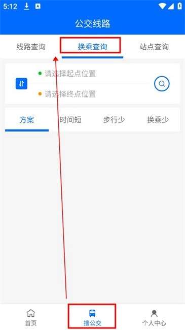 1.进入软件点击【搜公交】--[换乘查询]