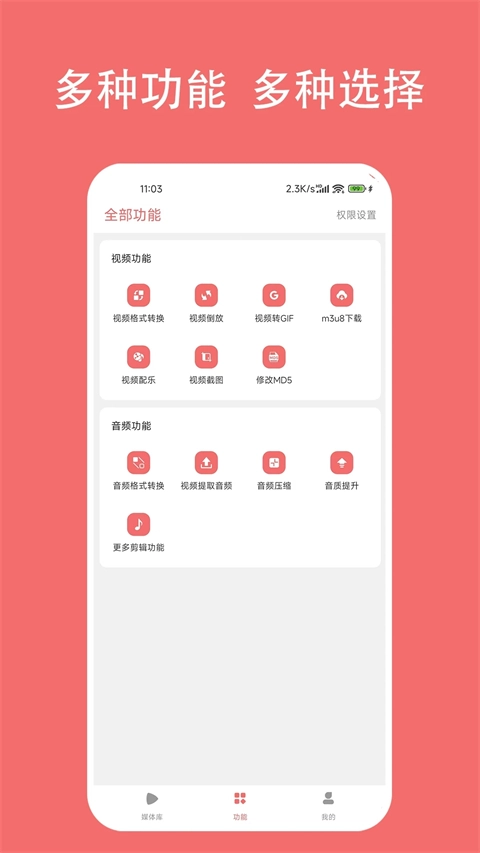 1、可实现mp3、aac、wav、amr、flac等多种主流音频格式的转换,同时支持对采样率与比特率进行设置