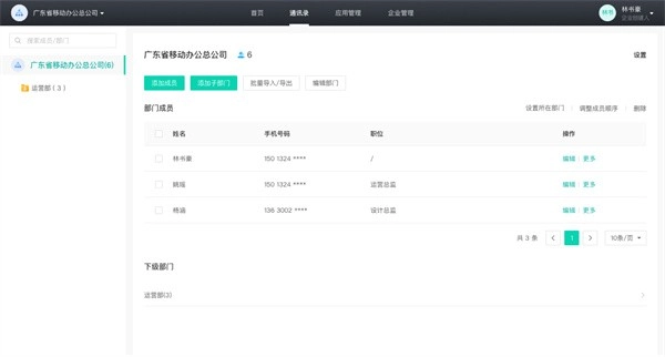 支持手机联系人和企业通讯录的全量查询,企业组织架构一目了然
