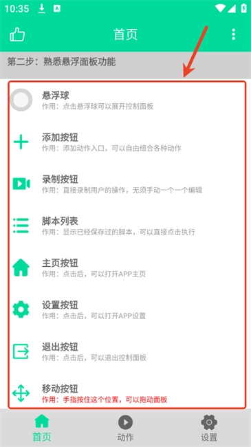 4.了解后进入【动作】专区,点击左上角+号