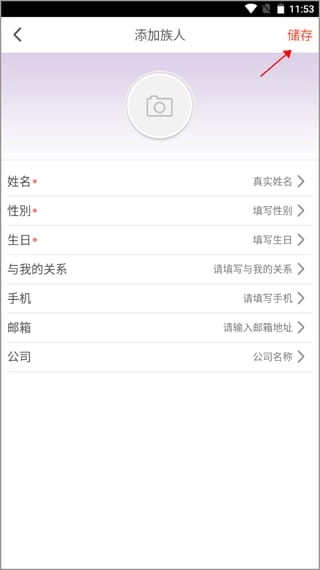 输入族人自己的基本信息以及跟用户的关系,填好之后就可以点击右上角的“储存”,族人就添加好了。