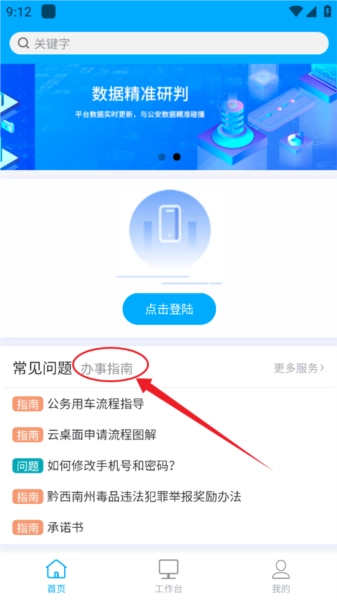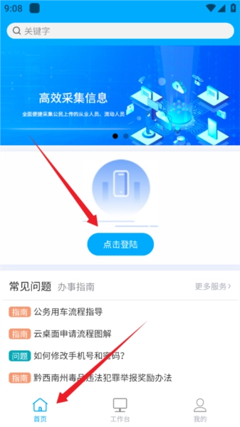 6. 支持在线缴纳交通违法产生的罚款,操作起来十分方便。1. 完成黔警通 的及安装后,打开该应用程序,进入首页并点击“登录”按钮。