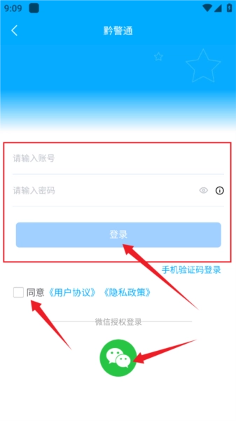 2. 按照提示填写账号和密码,并勾选用户协议,也可选择通过微信方式登录。