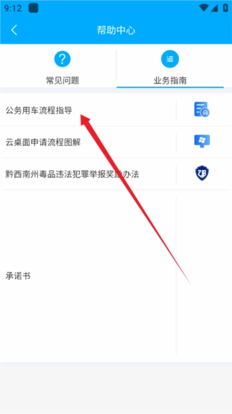 4. 例如,若要查询【公务用车流程指导】,点击相应入口进入。