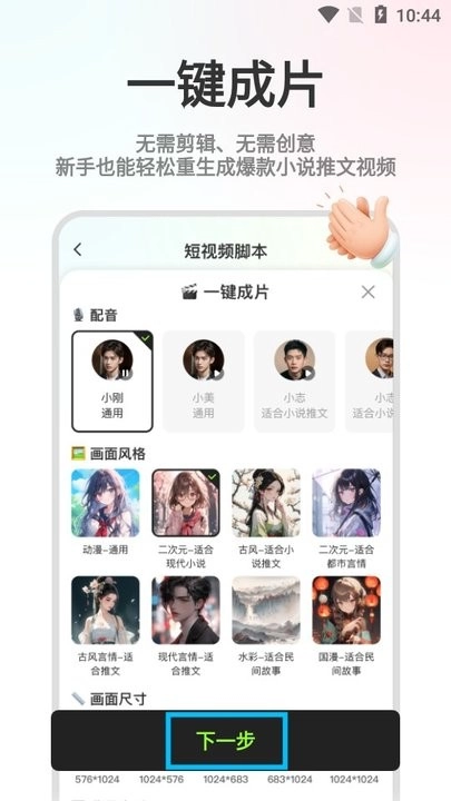 ·一键生成视频,不用剪辑、不用构思创意,新手也能轻松制作出爆款小说推文视频,点击【下一步】;