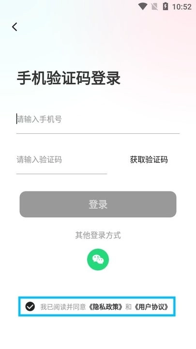 ·输入手机号验证码进行登录。