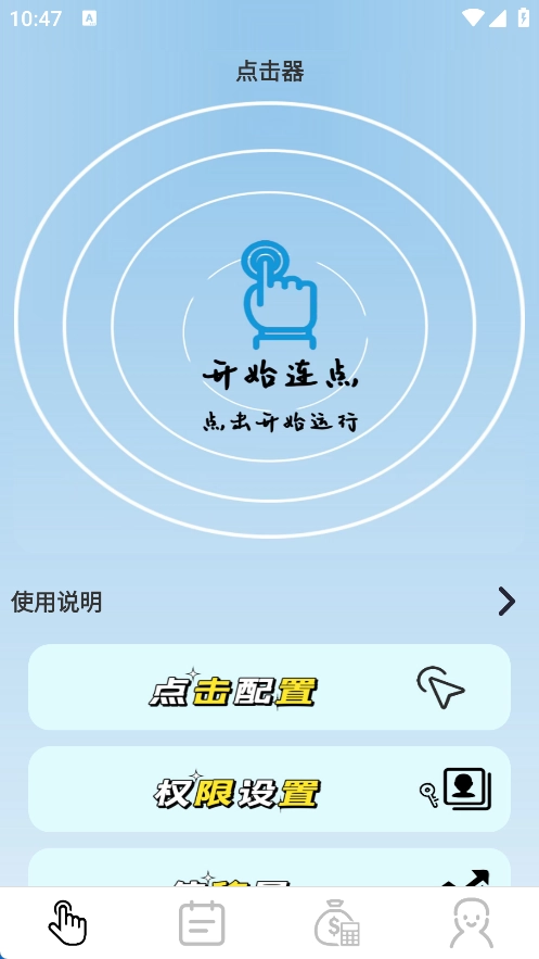 1、进入点击器主页面能够查看详细的使用说明,并且可以点击“开始连点”按钮来启动运行;